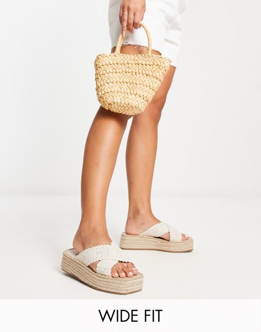 ASOS DESIGN Wide Fit – Jazlyn – Jasnobeżowe szydełkowane klapki na płaskiej platformie