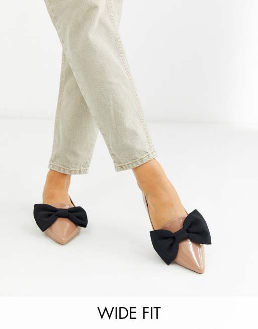 ASOS DESIGN Wide Fit – Lake – Beżowe balerinki z noskami w szpic i kokardami
