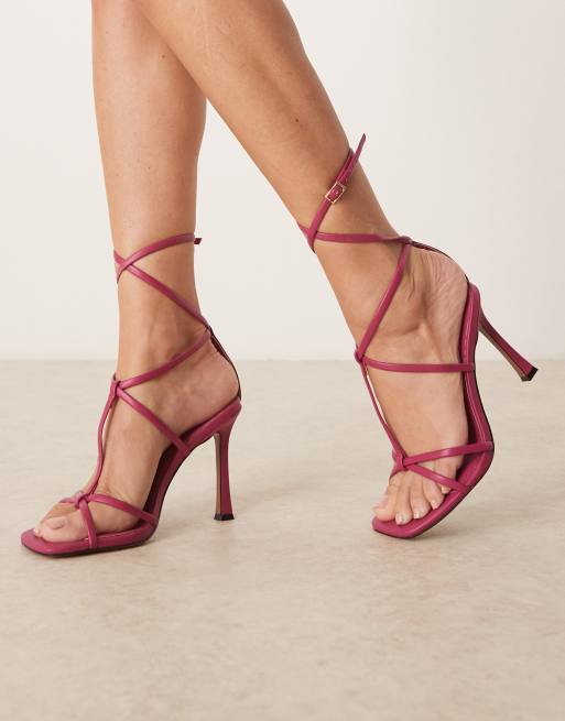 ASOS DESIGN Wide Fit – Nobel – Malinowe sandały na wysokim obcasie z paskami
