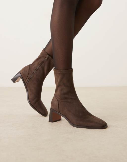 ASOS DESIGN Wide Fit – Rush – Brązowe botki do kostki z imitacji zamszu na obcasie wysuniętym do tyłu