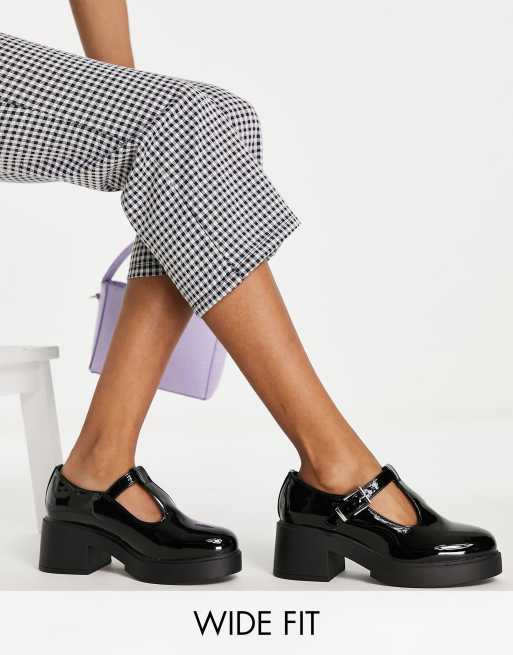 ASOS DESIGN Wide Fit – Stealth – Czarne buty Mary Jane na grubej podeszwie ze średnim obcasem