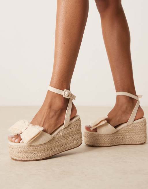 ASOS DESIGN Wide Fit – Tabitha – Buty na koturnie z naturalnego materiału z kokardką