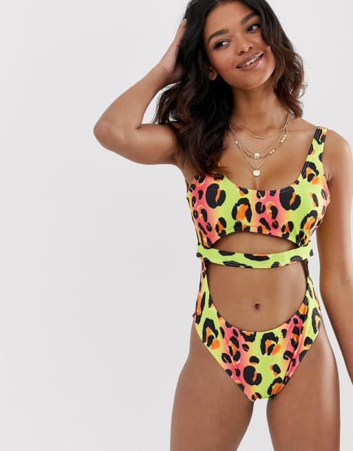 ASOS DESIGN – Większe rozmiary biustu – Strój kąpielowy z wycięciami w panterkę, w rozmiarach dd–g