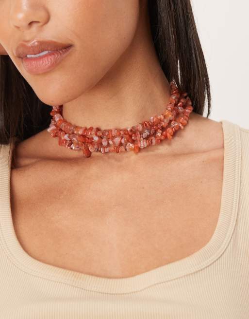 ASOS DESIGN – Wielorzędowy krótki naszyjnik z czerwonymi fragmentami kamieni
