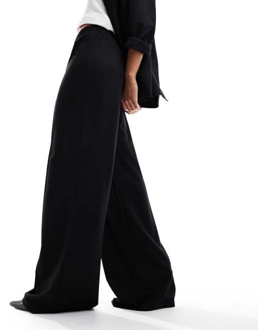 ASOS DESIGN – Wsuwane czarne spodnie z szerokimi nogawkami