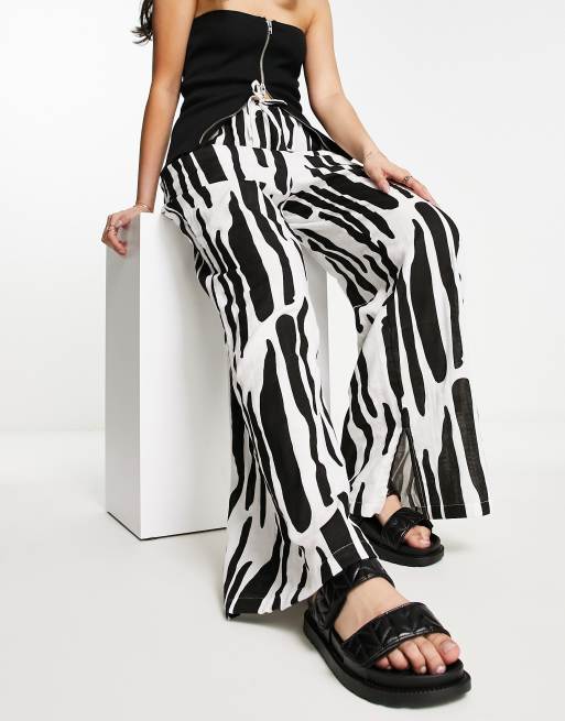 ASOS DESIGN – Wsuwane spodnie z muślinu w czarno-biały wzór