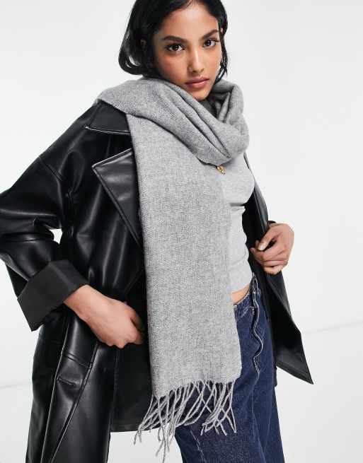 ASOS DESIGN – Wyjątkowo miękki szal w kolorze szarym z frędzlami