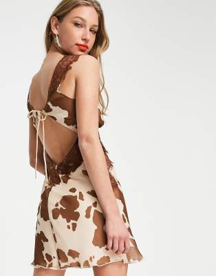 ASOS DESIGN – Wykończona koronką sukienka mini na ramiączkach z wiązaniem na plecach i wzorem