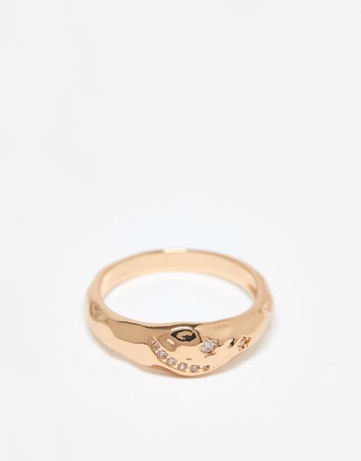 ASOS DESIGN – Wysadzany cyrkoniami pierścionek w kolorze złotym z efektem stopienia