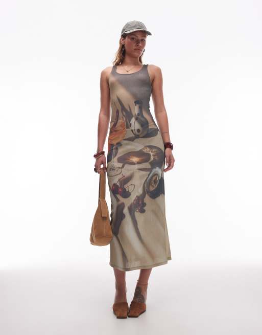 ASOS DESIGN – Wzorzysta sukienka maxi z dekoltem w kształcie litery U
