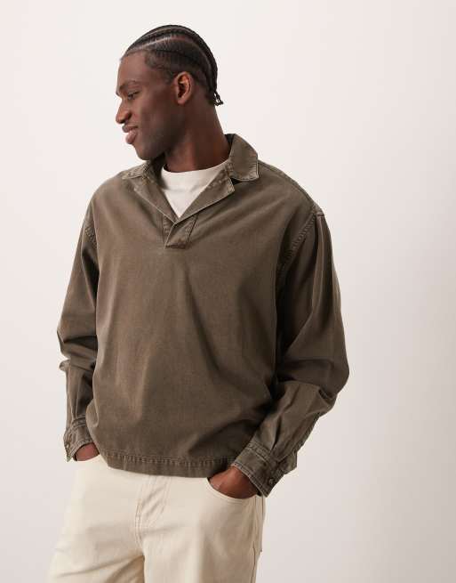 ASOS DESIGN – Zakładana przez głowę koszula oversize z kołnierzykiem kubańskim w spranym odcieniu khaki