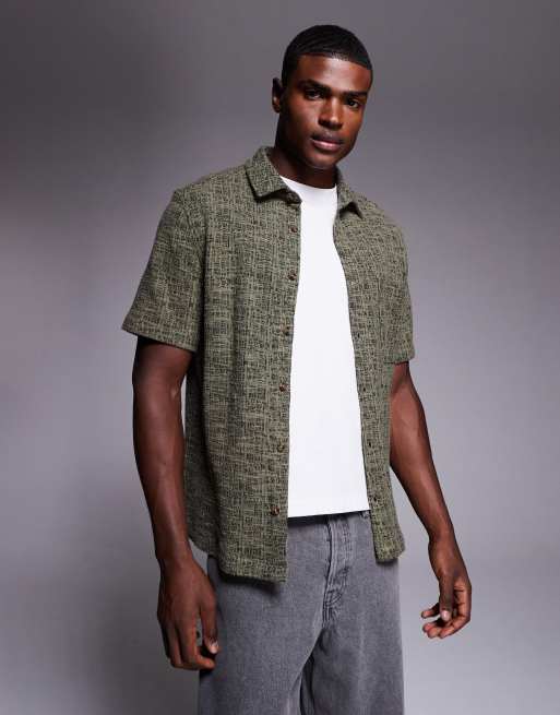ASOS DESIGN – Żakardowa koszula o regularnym kroju w kolorze khaki