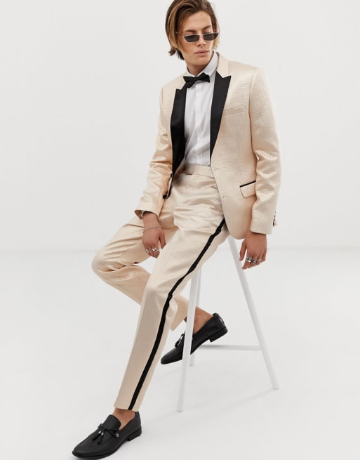 ASOS DESIGN – Żakardowy smoking na bal maturalny w kolorze słomkowym
