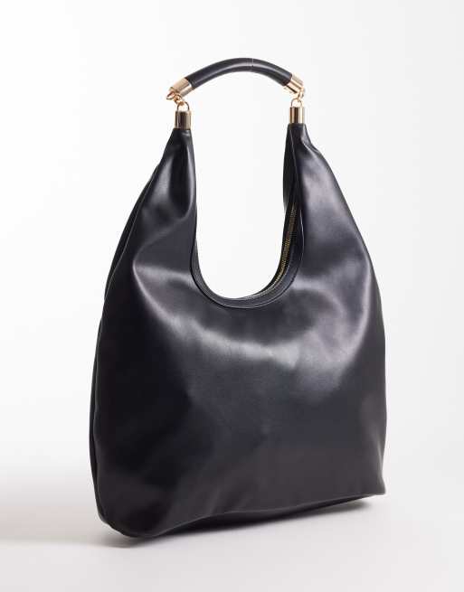 ASOS DESIGN – Zaokrąglona czarna torba typu tote z uchwytem z metalowymi wstawkami