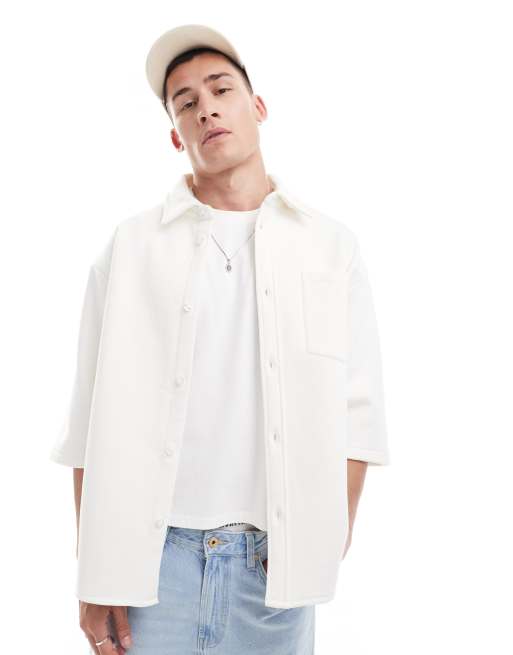 ASOS DESIGN – Zapinana na guzki biała bluza z krótkim rękawem