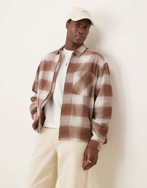 ASOS DESIGN – Zapinana na suwak koszula oversize o pudełkowym kroju w brązowo-białą kratkę