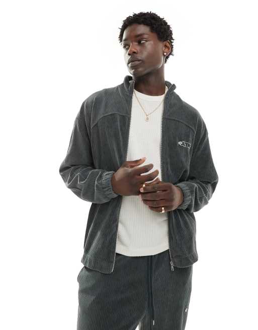 ASOS DESIGN – Zapinana na suwak prążkowana welurowa kurtka oversize w spranym grafitowym kolorze