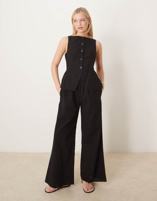 ASOS DESIGN – Zapinany na guzki czarny kombinezon o fasonie kamizelki