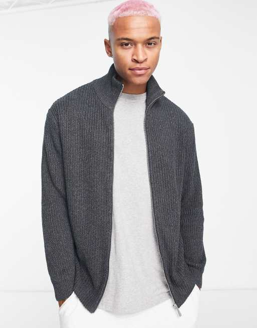 ASOS DESIGN – Zapinany na suwak prążkowany dzianinowy sweter oversize w grafitowym kolorze