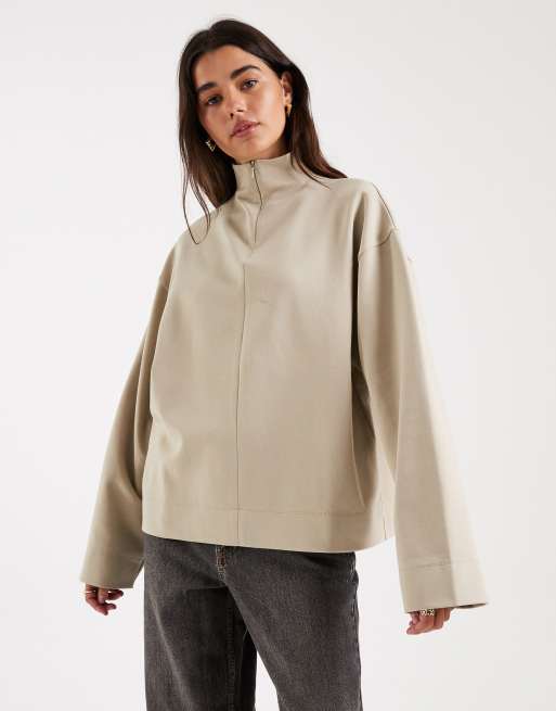 ASOS DESIGN – Zapinany na zamek beżowy top z golfem i długimi rękawami