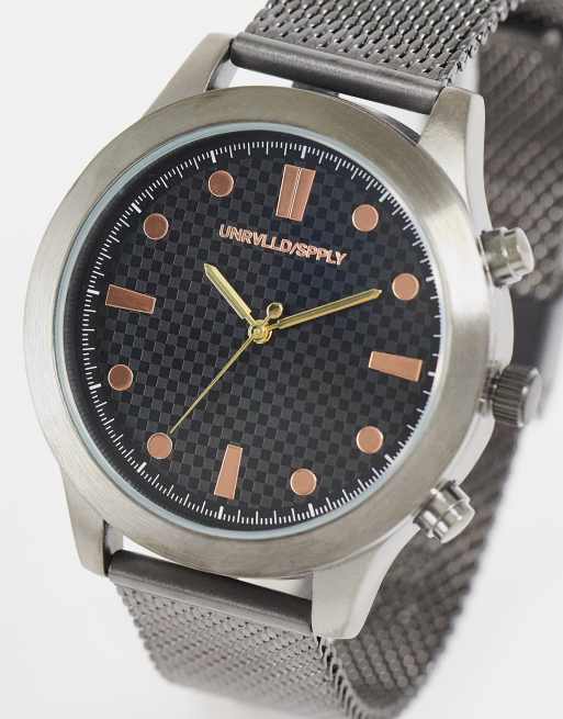 ASOS DESIGN – Zegarek na grafitowej bransolecie siateczkowej z czarną tarczą