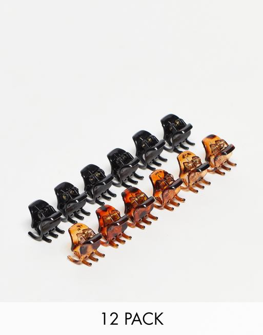 ASOS DESIGN – Zestaw 12 spinek do włosów w kolorach czarnym i szylkretowym