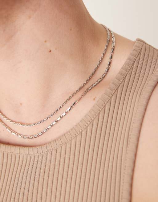 ASOS DESIGN – Zestaw 2 łańcuszków w odcieniu srebra o różnym fasonie