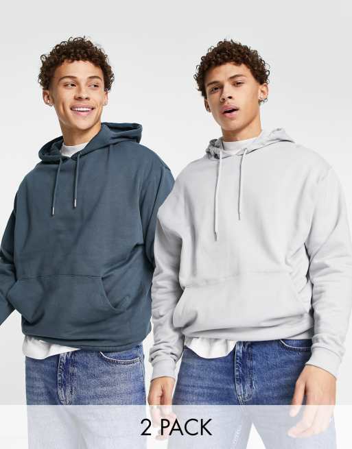 ASOS DESIGN – Zestaw 2 bluz z kapturem oversize w kolorze jasnoszarym i ciemnoszarym