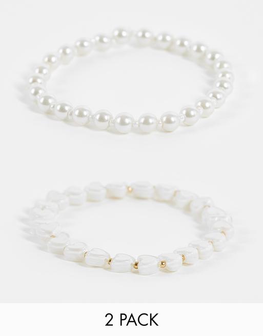 ASOS DESIGN – Zestaw 2 bransoletek: z koralikami w kształcie serca i 6 mm sztucznymi perłami