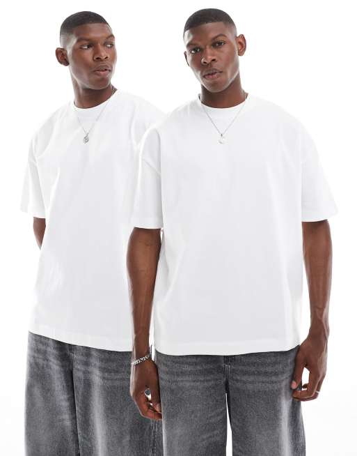 ASOS DESIGN – Zestaw 2 grubych białych T-shirtów oversize