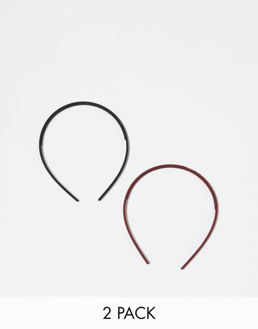 ASOS DESIGN – Zestaw 2 grzebieniowych opasek na głowę w kolorze czarnym i bordowym