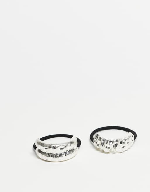 ASOS DESIGN – Zestaw 2 gumek do włosów z młotkowanym elementem w kolorze srebrnym