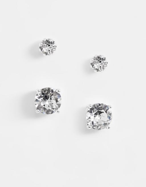 ASOS DESIGN – Zestaw 2 kolczyków-wkrętek w srebrnym odcieniu z kryształkami