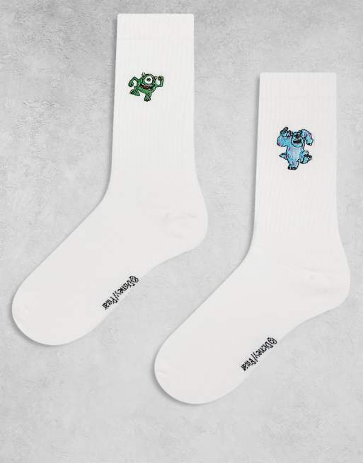 ASOS DESIGN – Zestaw 2 par białych skarpetek z motywem kreskówki Disneya Potwory i Spółka
