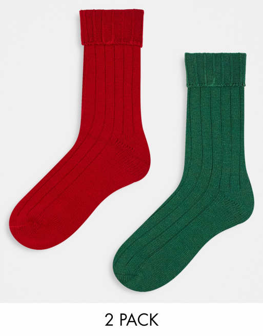 ASOS DESIGN – Zestaw 2 par grubych świątecznych skarpetek w kolorach zielonym i czerwonym