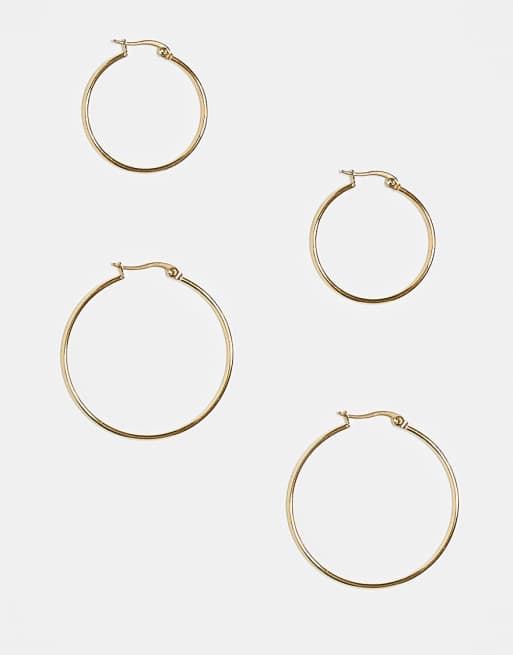ASOS DESIGN – Zestaw 2 par kolczyków-kół z wodoodpornej stali nierdzewnej w odcieniu złota