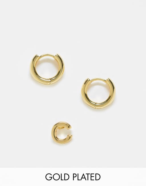 ASOS DESIGN – Zestaw 2 par platerowanych 14-karatowym złotem kolczyków kół i wkrętka z inicjałem C