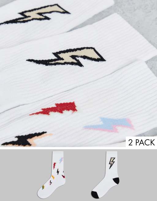 ASOS DESIGN – Zestaw 2 par skarpetek sportowych z kolorowymi błyskawicami
