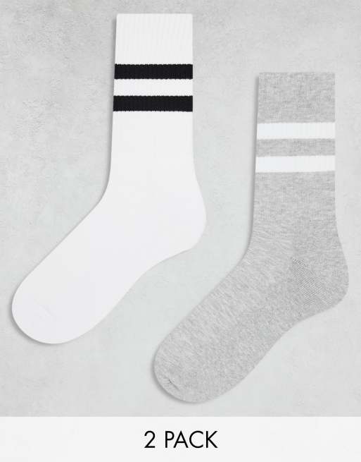 ASOS DESIGN – Zestaw 2 par skarpetek w kolorach białym i szarym z paskami