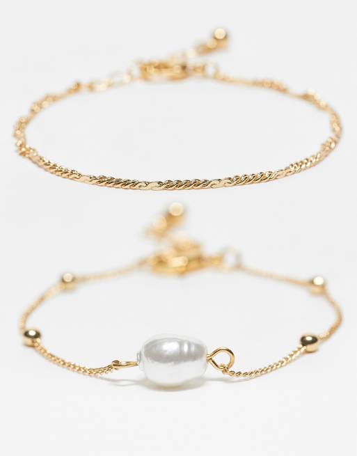 ASOS DESIGN – Zestaw 2 pozłacanych 14-karatowym złotem bransoletek z różnych łańcuszków z perełkami
