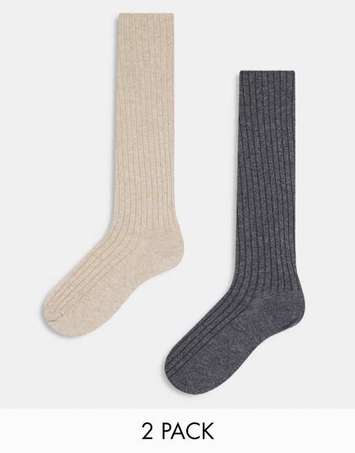 ASOS DESIGN – Zestaw 2 prążkowanych skarpetek do kolan w kolorze szarym i jasnobeżowym