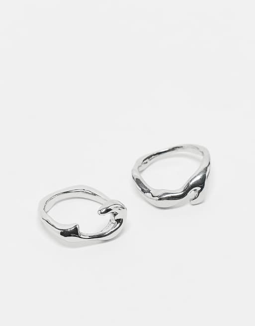 ASOS DESIGN – Zestaw 2 stopionych pierścionków w kolorze srebra