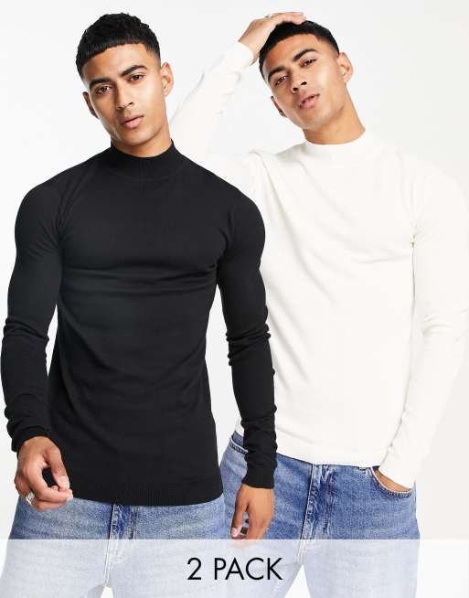 ASOS DESIGN – Zestaw 2 swetrów z prążkowanej dzianiny z golfem w kolorach białym i czarnym