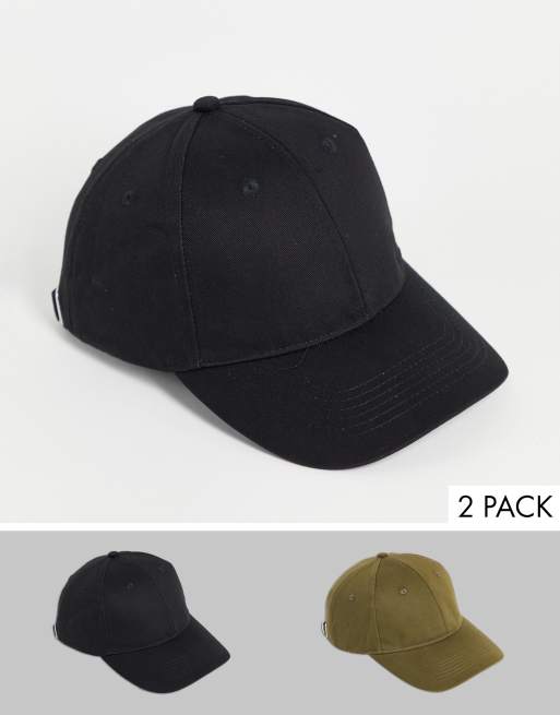 ASOS DESIGN – Zestaw 2 szt. bawełnianych bejsbolówek w kolorach czarnym i khaki