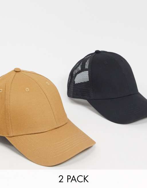 ASOS DESIGN – Zestaw 2 szt. czapek trucker w kolorze czarnym i camelowym, w zestawie taniej!