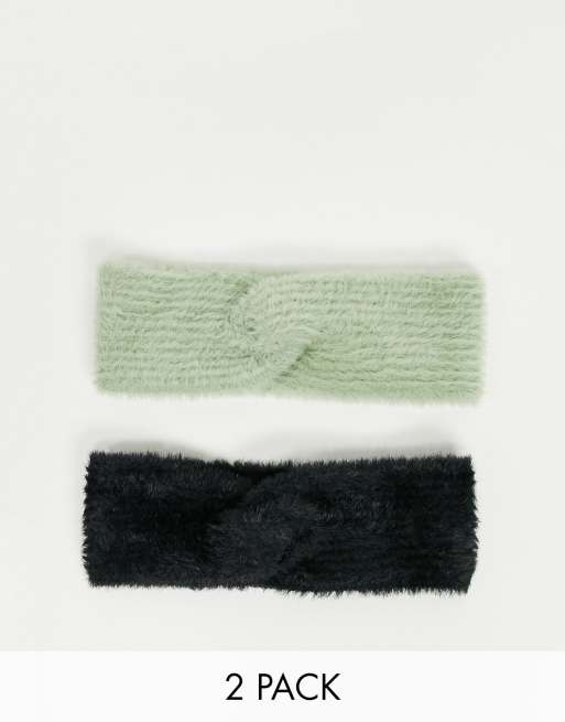 ASOS DESIGN – Zestaw 2 szt. prążkowanych opasek na głowę w kolorze miętowym i czarnym