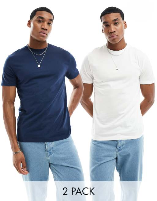 ASOS DESIGN – Zestaw 2 T-shirtów z okrągłym dekoltem w kolorach granatowym i białym