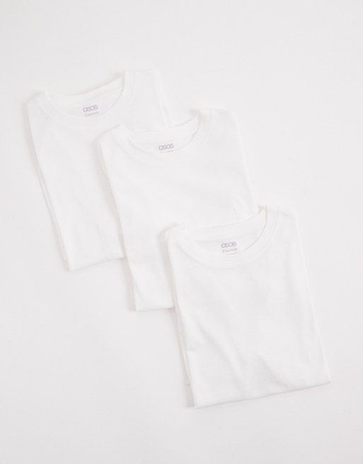 ASOS DESIGN – Zestaw 3 białych T-shirtów basic o regularnym kroju