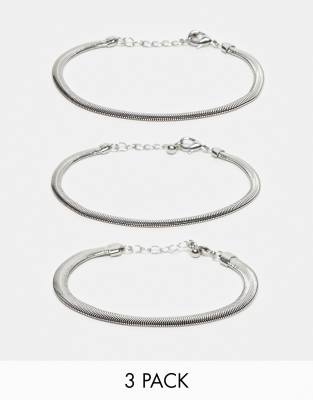ASOS DESIGN – Zestaw 3 bransoletek łańcuszkowych o fasonie wężyka w odcieniu srebra
