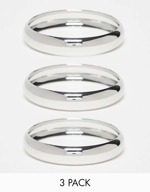 ASOS DESIGN – Zestaw 3 bransoletek bangle w kolorze srebra